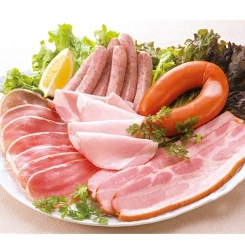 内容量 | ホワイトロースハム(60g) 生ハム(66g) レモン&パセリウインナー(126g) ぶ厚いベーコン(200g) U字フランク(160g) |